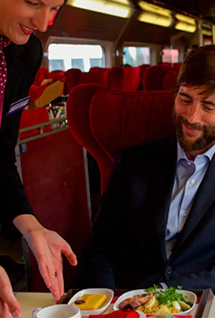 Nyd ekstra plads og komfort på første klasse. Under Kanalen og fra London til York inkluderer første klasse servering af et måltid og vin ved sædet